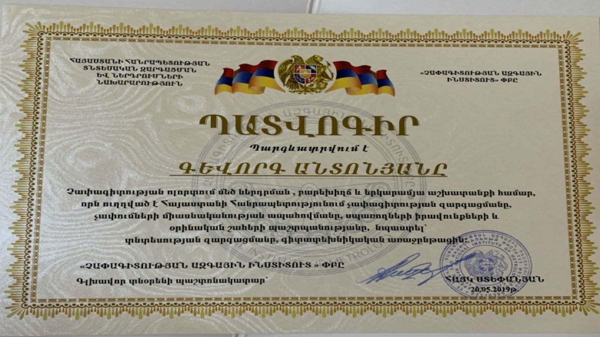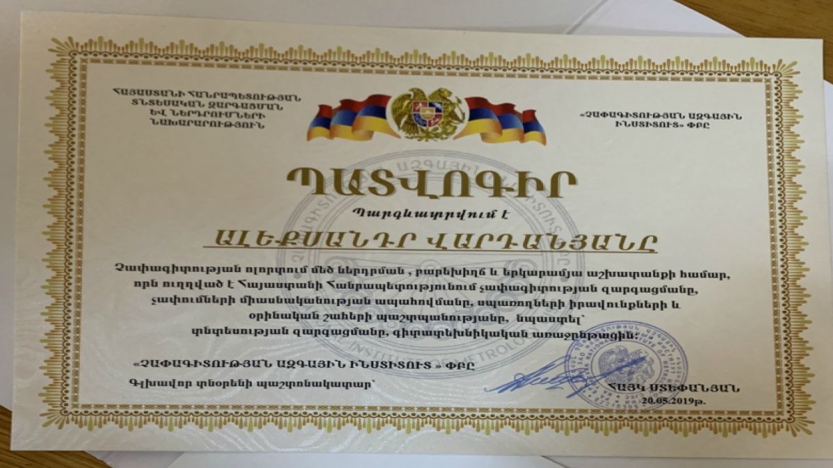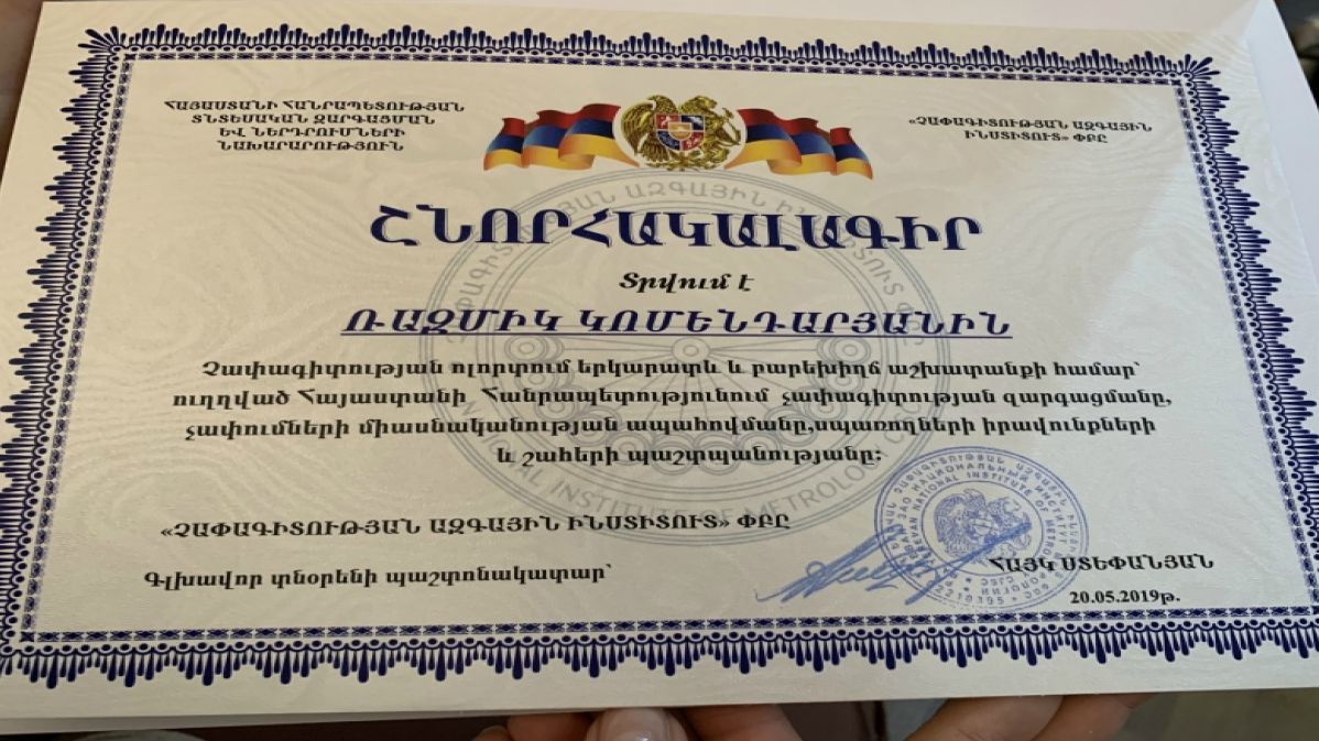 Երկարամյա բարեխիղճ աշխատանքի համար մի շարք աշխատակիցների տրվեցին Պատվոգրեր և Շնորհակալագրեր: Հանդիսավոր արարողության շրջանակում տեղի ունեցավ նաև չափագիտության զարգացման գործում մեծ ավանդ ներդրած աշխատակիցներին անվանական ժամացույցների հանձնում: