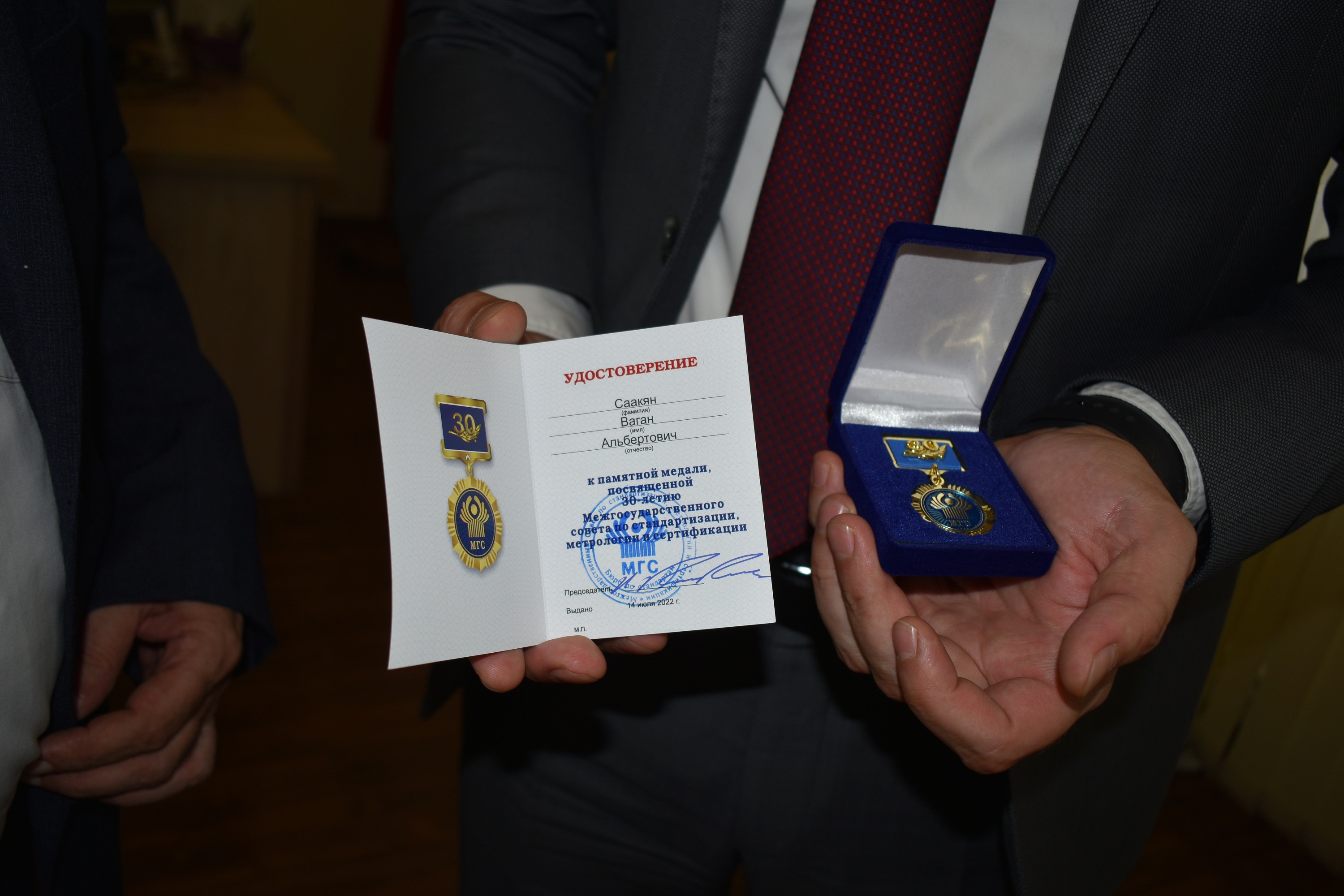 «ԱՊՀ 30-ամյա» հուշամեդալով պարգևատրվեց «Չափագիտության ազգային ինստիտուտ» ՓԲ ընկերության նախկին տնօրեն, վաստակավոր չափագետ Վահան Սահակյանը, ով այժմ «Չափումների ազգային ինստիտուտ» ՓԲ ընկերության տնօրենն է։