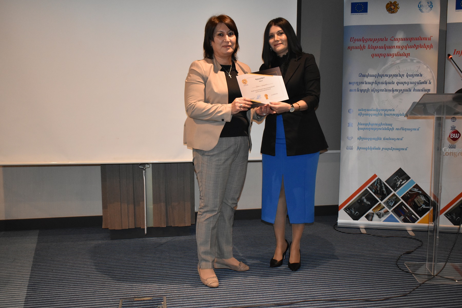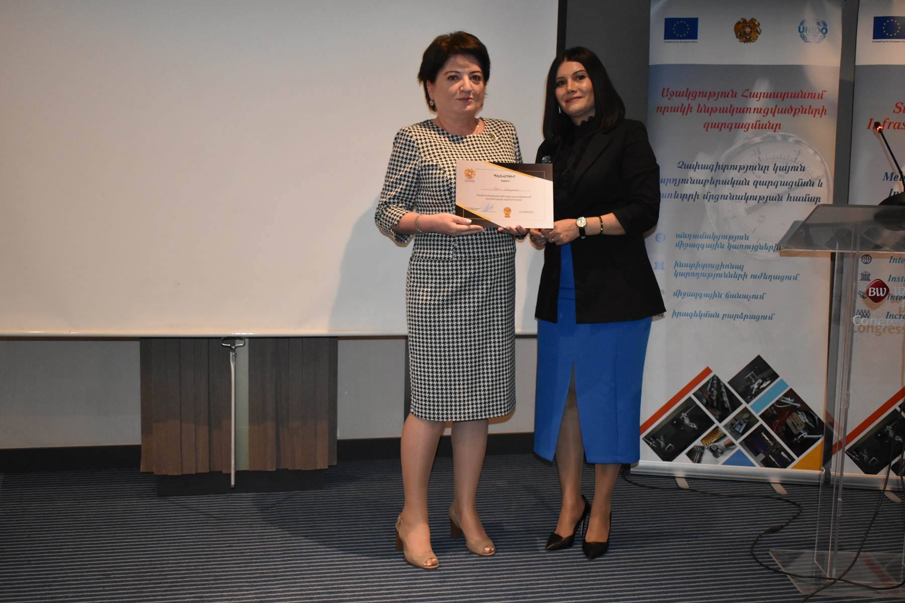Միջոցառման ավարտին ՀՀ էկոնոմիկայի նախարարության որակի ենթակառուցվածքի զարգացման վարչության պետ Ժաննա Զաքարյանը Պատվոգրեր և Շնորհակալագրեր շնորհեց մի շարք ընկերությունների և աշխատակիցների, այդ թվում՝ «Ստանդարտացման և չափագիտության ազգային մարմին» ՓԲ ընկերությանը։