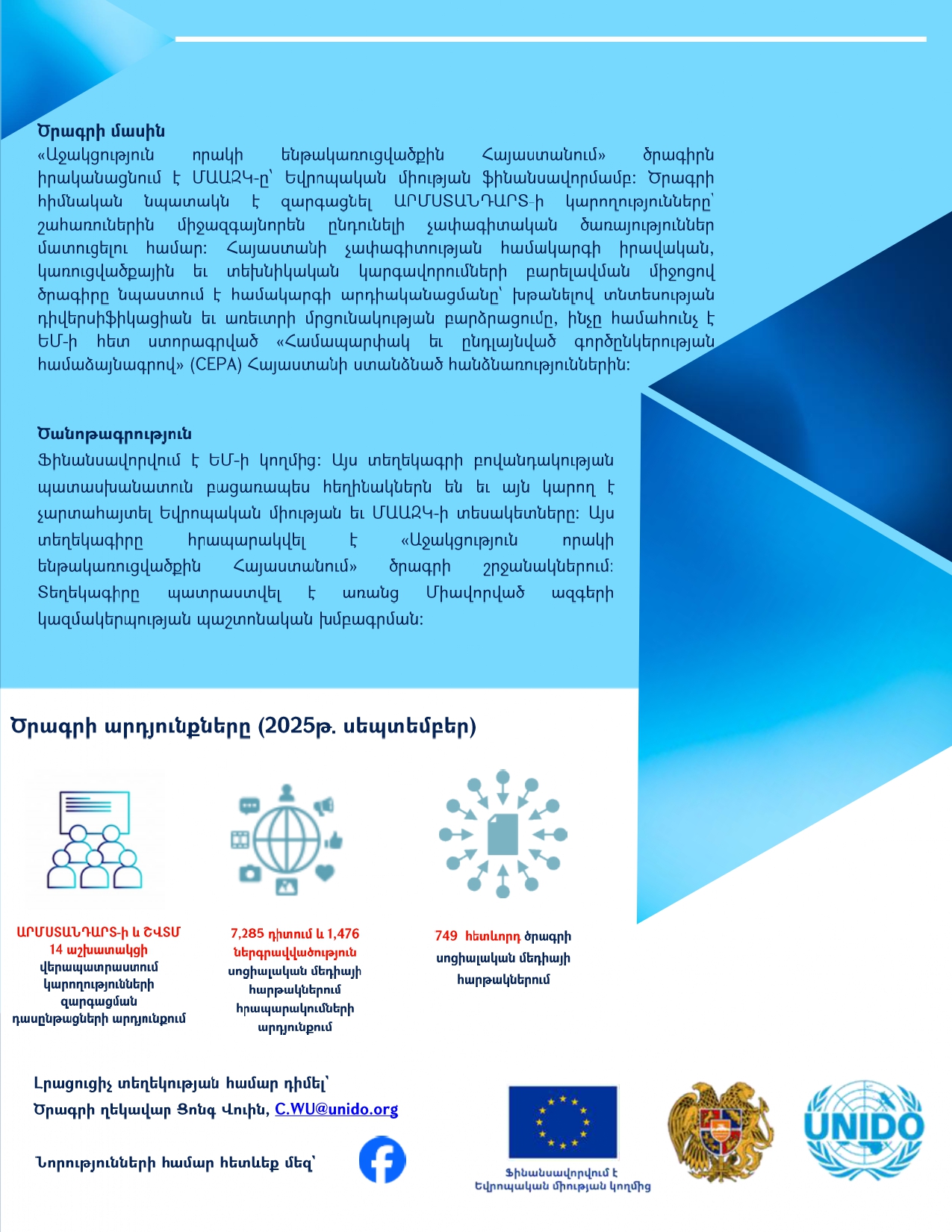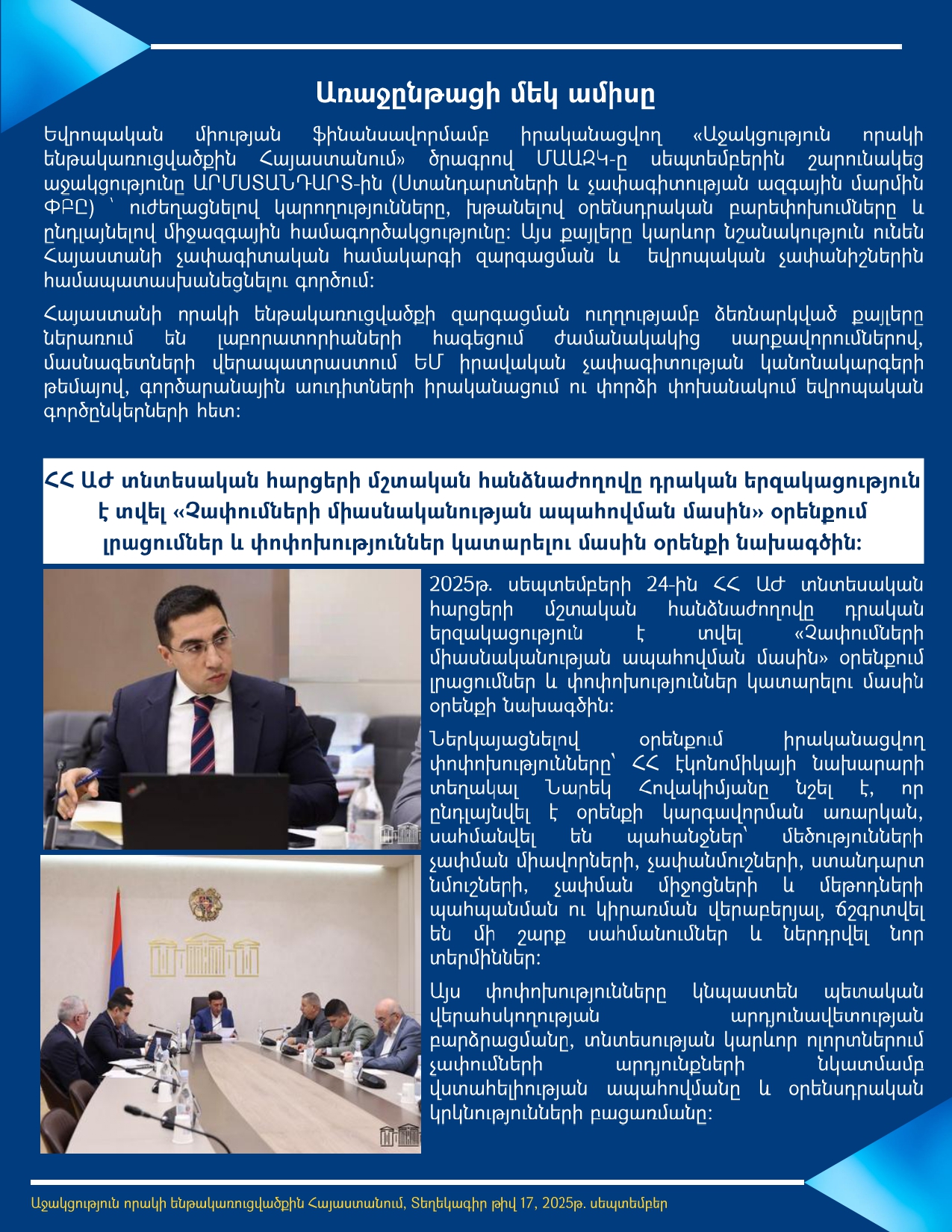 ԵՎՐՈՊԱԿԱՆ ՄԻՈՒԹՅԱՆ ՖԻՆԱՆՍԱՎՈՐՄԱՄԲ և ՄԱԱԶԿ-ի ԱՋԱԿՑՈՒԹՅԱՄԲ ԻՐԱԿԱՆԱՑՎՈՂ «ԱՋԱԿՑՈՒԹՅՈՒՆ ՈՐԱԿԻ ԵՆԹԱԿԱՌՈՒՑՎԱԾՔԻՆ ՀԱՅԱՍՏԱՆՈՒՄ» ԾՐԱԳՐԻ ՏԵՂԵԿԱԳԻՐ, 2025 թվականի սեպտեմբեր