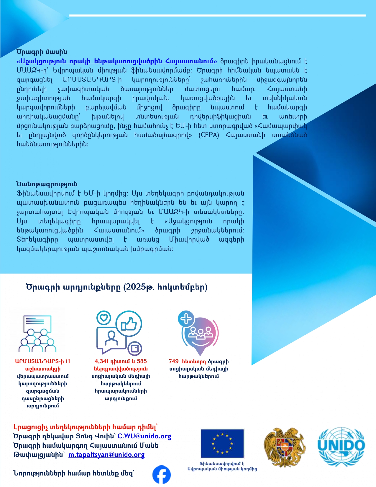 ԵՎՐՈՊԱԿԱՆ ՄԻՈՒԹՅԱՆ ՖԻՆԱՆՍԱՎՈՐՄԱՄԲ և ՄԱԱԶԿ-ի ԱՋԱԿՑՈՒԹՅԱՄԲ ԻՐԱԿԱՆԱՑՎՈՂ «ԱՋԱԿՑՈՒԹՅՈՒՆ ՈՐԱԿԻ ԵՆԹԱԿԱՌՈՒՑՎԱԾՔԻՆ ՀԱՅԱՍՏԱՆՈՒՄ» ԾՐԱԳՐԻ ՏԵՂԵԿԱԳԻՐ, 2025 թվականի հոկեմբեր