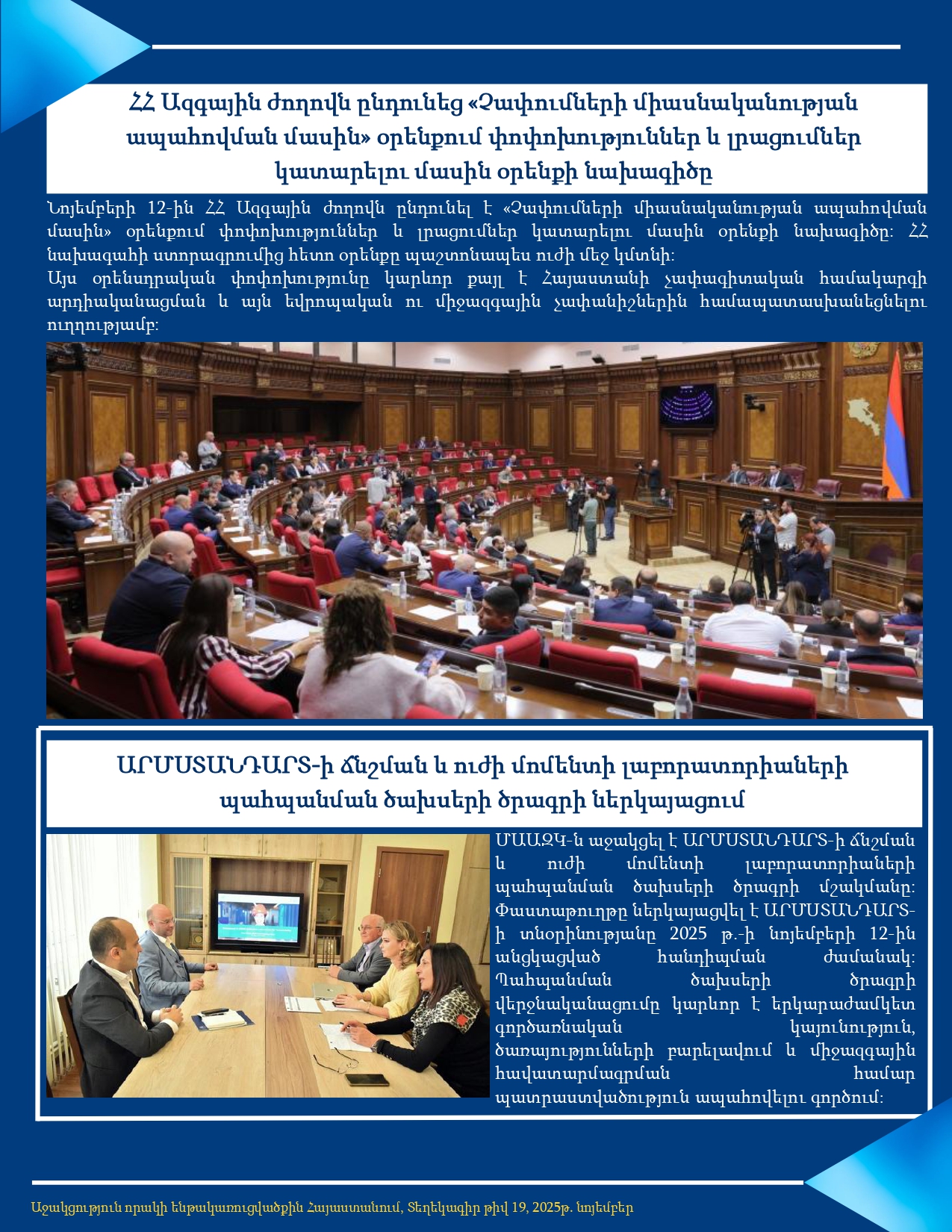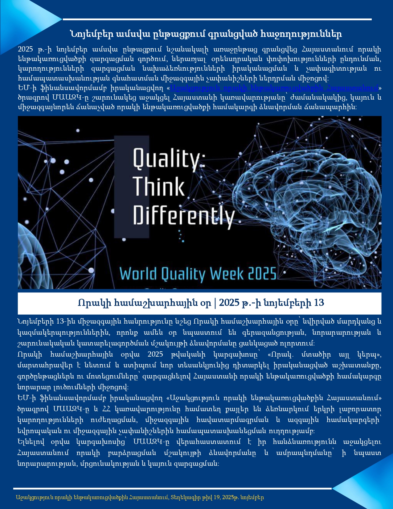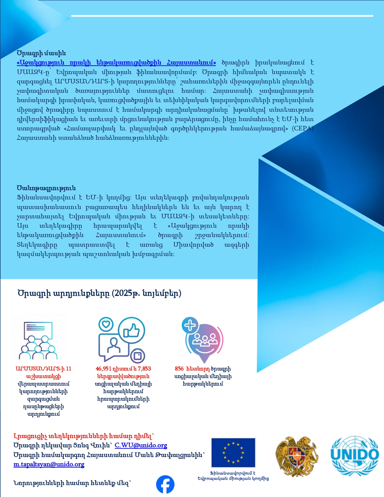 ԵՎՐՈՊԱԿԱՆ ՄԻՈՒԹՅԱՆ ՖԻՆԱՆՍԱՎՈՐՄԱՄԲ և ՄԱԱԶԿ-ի ԱՋԱԿՑՈՒԹՅԱՄԲ ԻՐԱԿԱՆԱՑՎՈՂ «ԱՋԱԿՑՈՒԹՅՈՒՆ ՈՐԱԿԻ ԵՆԹԱԿԱՌՈՒՑՎԱԾՔԻՆ ՀԱՅԱՍՏԱՆՈՒՄ» ԾՐԱԳՐԻ ՏԵՂԵԿԱԳԻՐ, 2025 թվականի նոյեմբեր