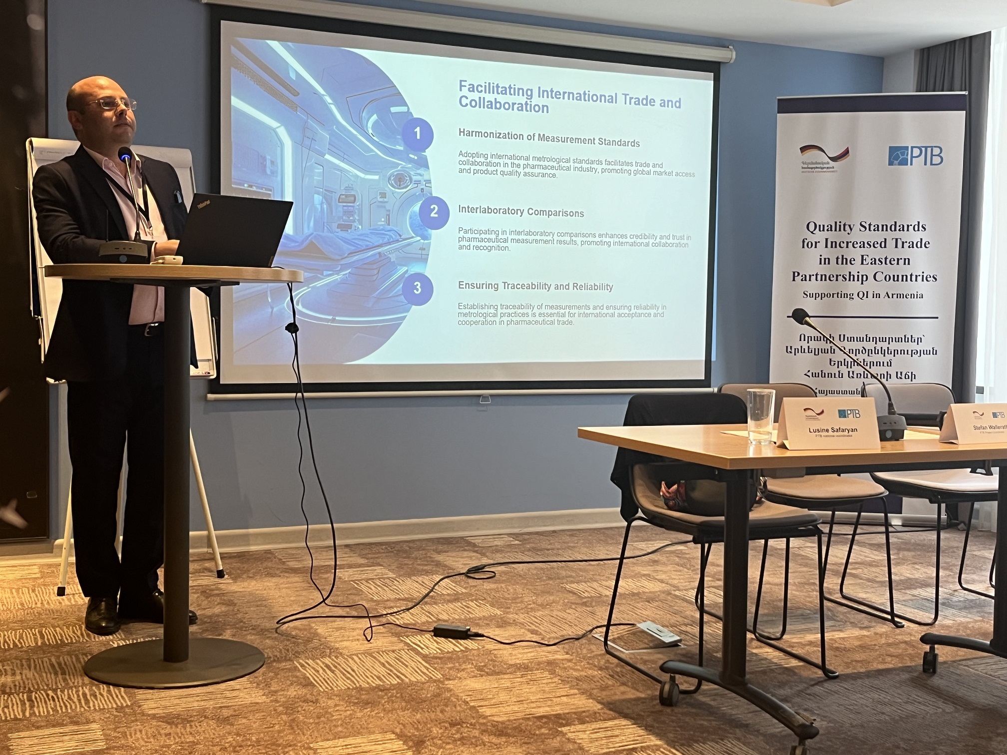 В семинаре приняли участие около 50 экспертов фармацевтической промышленности, представители Министерства экономики РА и Министерства здравоохранения РА, а также международные партнеры программы Технического сотрудничества, финансируемой правительством Германии и осуществляемой немецким Национальным институтом метрологии (PTB).